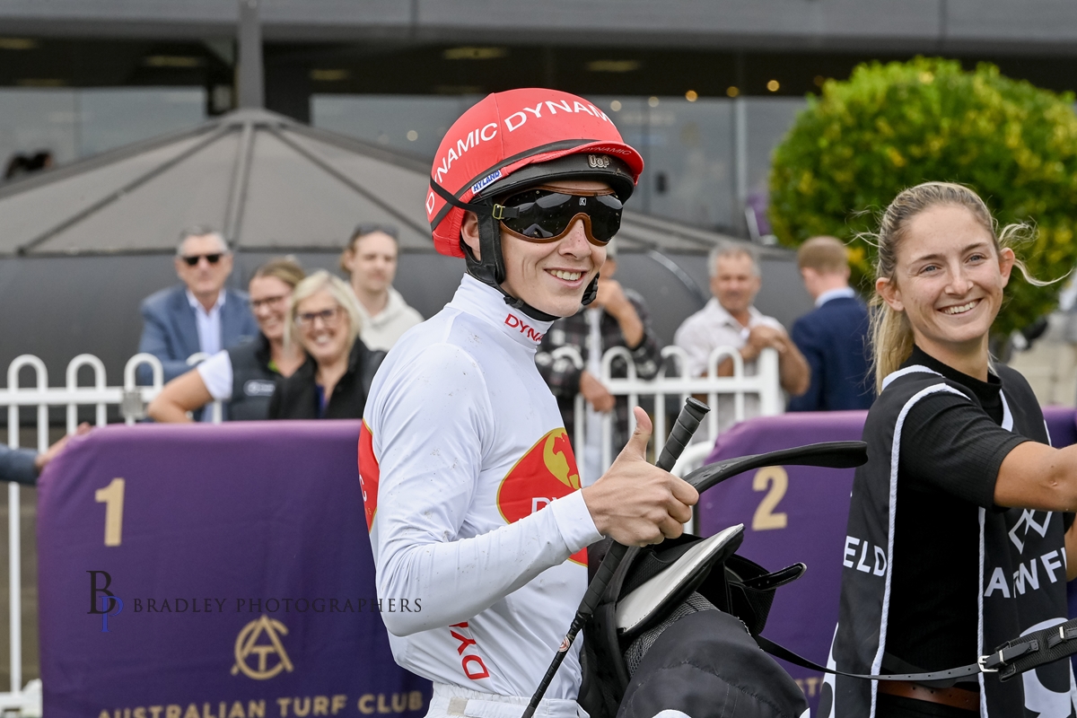 Zac Lloyd all smiles after his Dynamic Win extends his lead in the Jockey Premiership