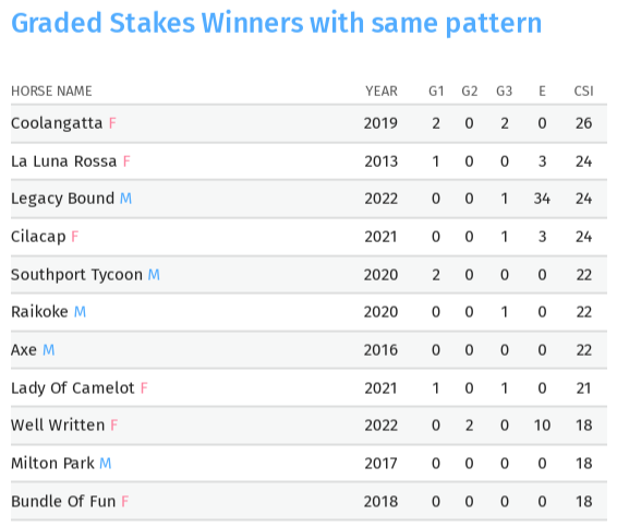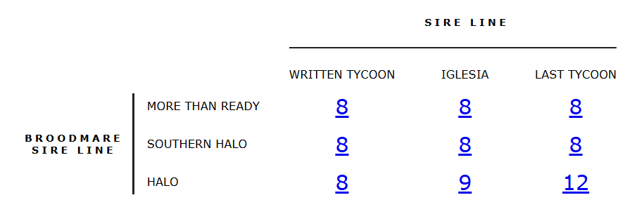 One of the strongest reasons we targeted this colt, however, lies in the proven success of the Written Tycoon sire line over More Than Ready-line mares. This is not a theoretical mating or an experimental pattern — it is a cross that has already produced outstanding racehorses, including Group 1 winners and stakes performers with impressive strike rates.