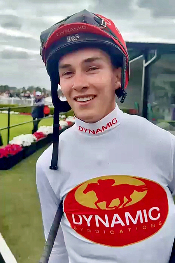 Zac Lloyd all smiles after his Dynamic Win extends his lead in the Jockey Premiership